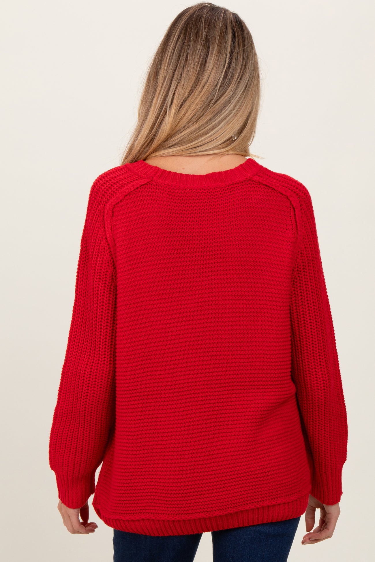 Red Basic Chunky Knit Maternity Sweater