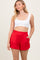 Stay cool and stylish with our Red Basic Rounded Hem Shorts. Made from lightweight, breathable fabric, these shorts offer all-day comfort with a relaxed fit and elastic waistband for easy wear. The vibrant red color adds a bold pop to your casual wardrobe, while the rounded hem provides a flattering, modern look. Perfect for workouts, beach days, or lounging at home. Pair them with your favorite crop top or tee for an effortlessly chic summer vibe. Available in multiple sizes to suit your perfect fit. Upgrade your basics with these versatile, must-have shorts!