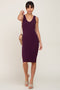 A solid, basic maternity dress with a v-neckline and a knee-length.