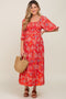 Red Floral Smocked Square Neck Tiered Midi Dress