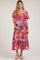 Red Floral Square Neck Smocked Tiered Maternity Midi Dress
