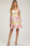 Red Leaf Print Satin Square Neck Midi Dress