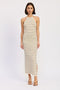 Elevate your maternity style with this stunning Mesh Pendant Halter Midi Dress. Designed to embrace your growing bump, this dress features a flattering halter neckline with a delicate pendant accent that adds a touch of elegance. The breathable mesh fabric offers a lightweight feel and subtle texture, ensuring comfort throughout the day or night. Its midi length creates a sophisticated silhouette, perfect for special occasions or evening events. The ruched sides provide gentle stretch and extra room for your baby bump, allowing you to move with ease and confidence. Pair it with your favorite heels and accessories for a chic, maternity-ready look.