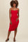Red Rhinestone Sleeveless Ruched Mesh Midi Dress