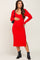 Red Ribbed Long Puff Sleeve Maternity Midi Dress