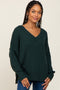 A solid ribbed midi dress featuring long puff sleeves, a side slit and a scoop neckline.