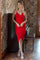 Red Ruched Mesh Fitted Tulip Hem Dress