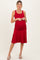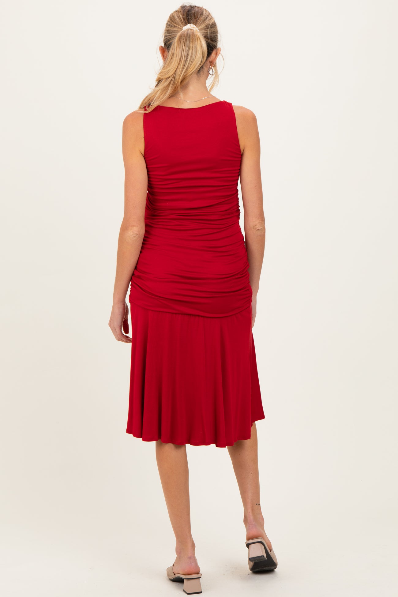 Red Ruched Sleeveless Drop Waist Maternity Midi Dress