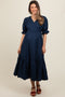 Red Short Puff Sleeve Tiered Maternity Midi Dress