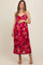 Red Sleeveless Front Twist Back Smocking Maternity Midi Dress