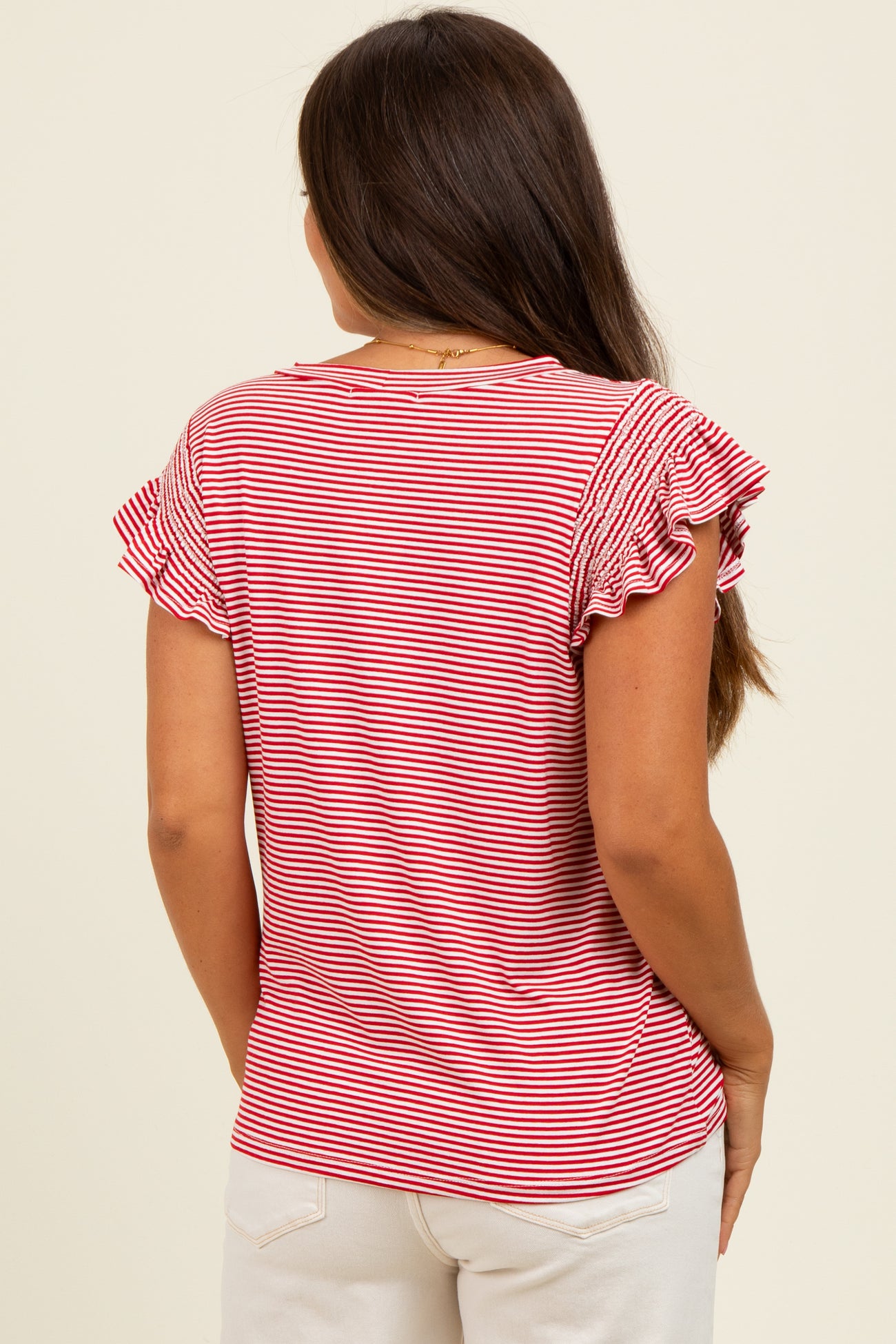 Red Striped Flutter Sleeve Maternity Top