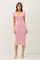 Red Striped Square Neck Short Sleeve Midi Dress