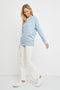 A solid chiffon swiss dot maternity dress with long sleeves, split collar neckline, and tiered body. Dress is lined but sleeves are semi sheer.