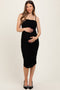 Royal Blue Animal Print Front Tie Strapless Maternity Midi Dress