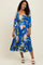 Royal Blue Floral Square Neck 3/4 Sleeve Midi Dress