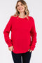 A knit pullover maternity sweater featuring long sleeves and a rounded neckline.