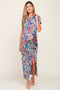 Royal Blue Multi-Color Floral Side Slit Maxi Dress