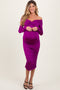 Royal Blue Off Shoulder Ruched Long Sleeve Maternity Midi Dress