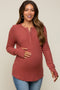 Rust Button Front Soft Knit Long Sleeve Henley Top