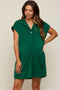 A linen maternity button up featuring a color block design, a collar, front functioning buttons, a front pocket, long drop shoulder sleeves, side slits at the hem, and a hi-lo hem.