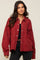 A solid shirt jacket with floral embroidery and a fringe hem. Features collared neckline, snap button front closure and two chest pockets.