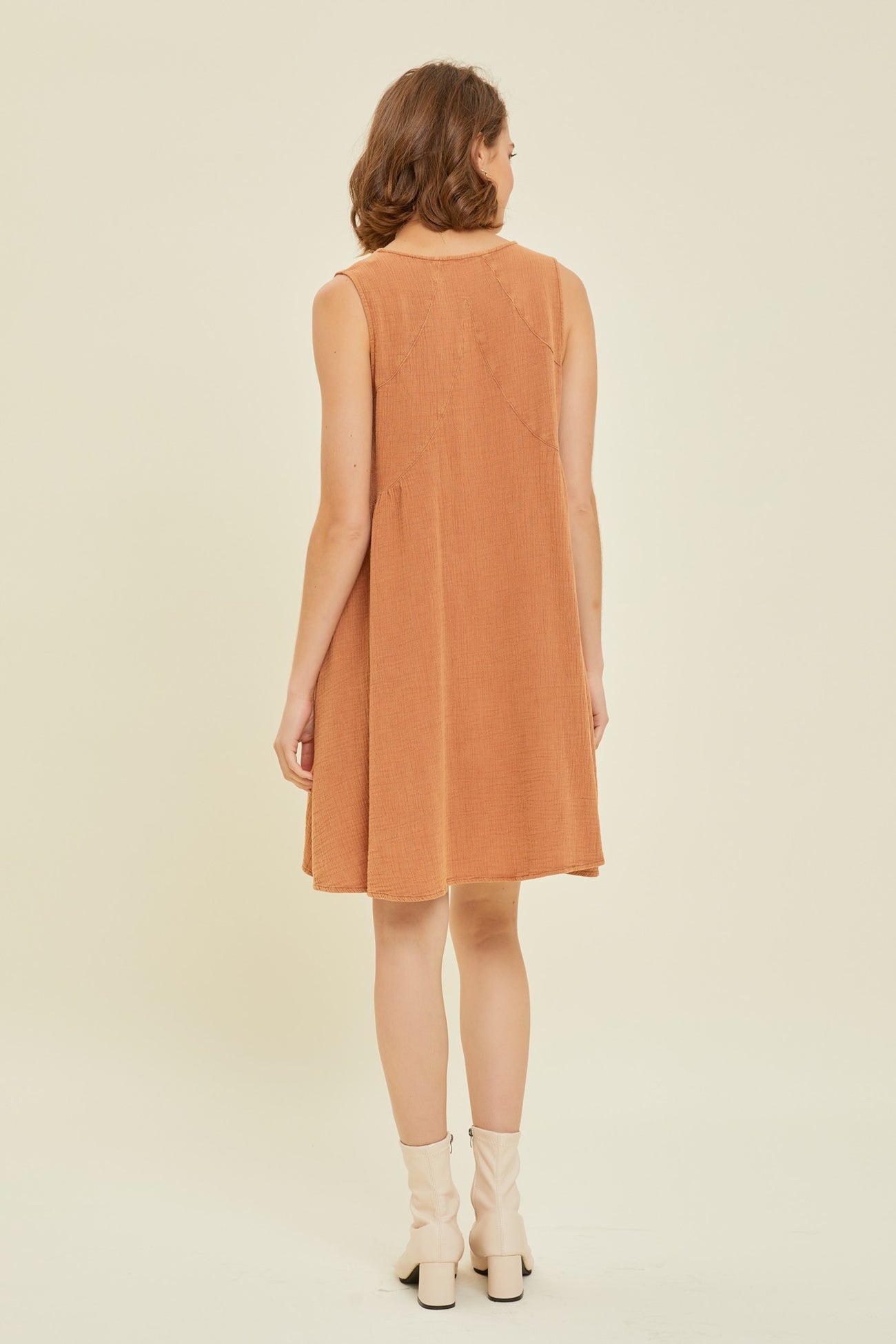 Rust Mineral-Washed Gauze V-Neck Flare Mini