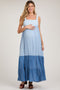 A solid hued maternity dress featuring short puff sleeves, side pockets, a self-tie back and a square neckline.