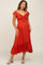 Rust Smocked Ruched Ruffle Hem Maternity Maxi Dress