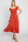 Rust Smocked Ruched Ruffle Hem Maxi Dress