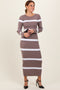 Rust Striped Short Sleeve Side Slit T-Shirt Midi Dress