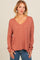 Cozy up in effortless style with our Rust V-Neck Basic Sweater. This lightweight, soft-knit sweater features a flattering V-neckline and a relaxed fit that drapes beautifully, making it perfect for layering or wearing solo. The warm rust color adds a touch of autumnal charm to any outfit, effortlessly pairing with your favorite jeans or skirts. Designed for all-day comfort, its breathable fabric keeps you snug without overheating. Whether you're out for a casual day or weekend brunch, this timeless staple brings easy, versatile warmth to your wardrobe. Available in multiple sizes to suit your style.