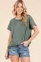 Sage/ Ivory Solid Ribbed Ruffle Sleeve Fitted Top