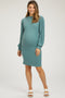 A solid knit top featuring short sleeves, a front pocket and a rounded neckline.