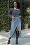 Sky Blue White Dolman Sleeve Braid Belted Ruffle Hem Mini Dress