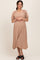 Tan Linen Short Puff Sleeve Maternity Midi Dress