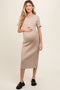 Taupe Deep V-Neck Puff Short Sleeve Asymmetrical Hem Midi Dress