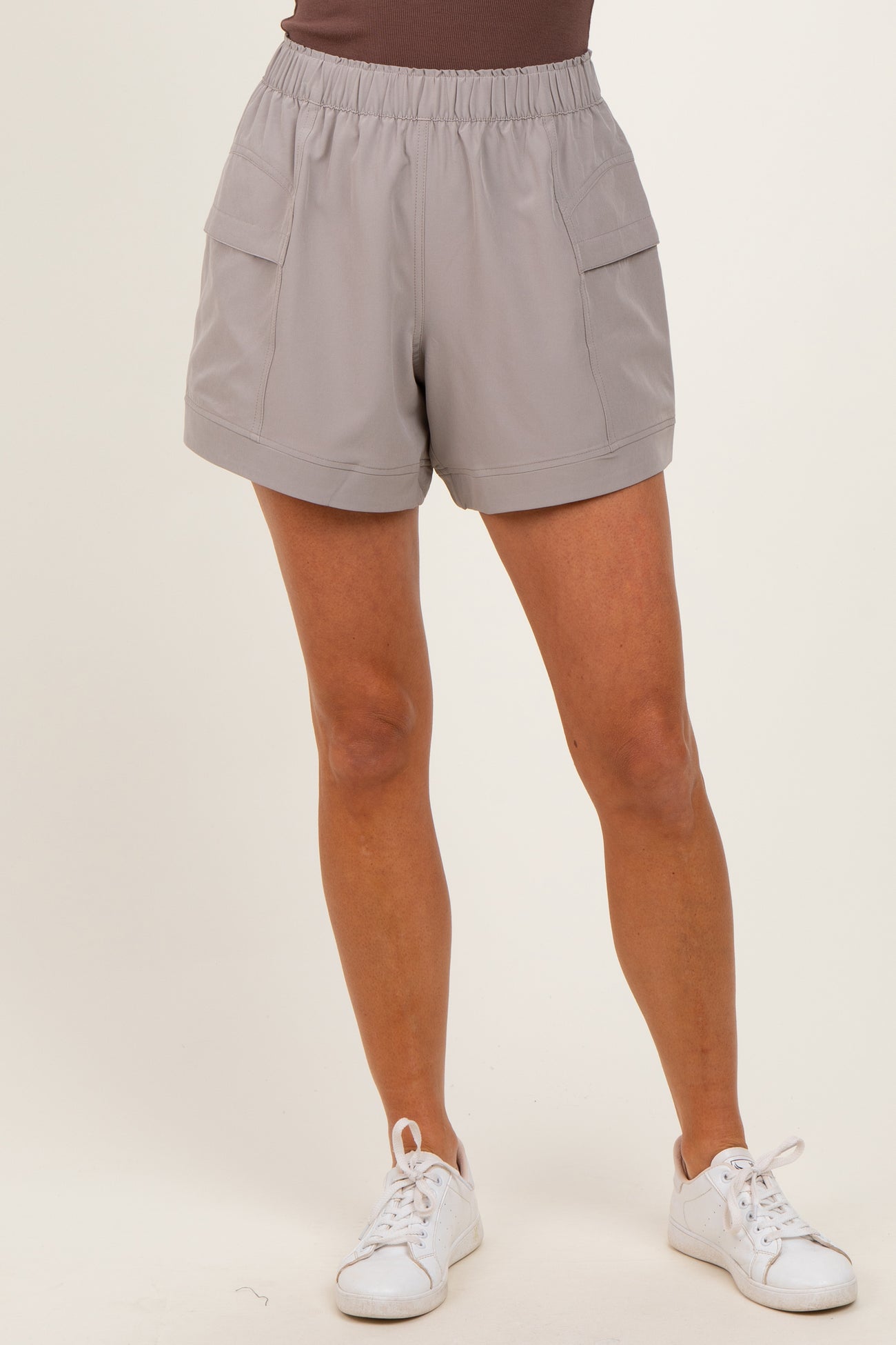 Taupe Elastic Cargo Shorts