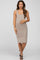 A solid sleeveless maternity midi fitted dress with a scoop neckline.