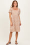 Taupe Floral Ruched Midi Maternity Dress
