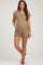 Taupe Gauze Button Up Front Pocket Maternity Romper