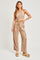 Taupe Halter Neck Linen Crop Top With High Waisted Pants
