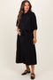 Taupe Puff Sleeve Basic Midi Dress