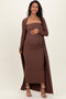 Taupe Ribbed Sleeveless Dress Cardigan Maternity Set