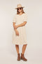 Taupe Textured Knit Puff Sleeve Midi Dress