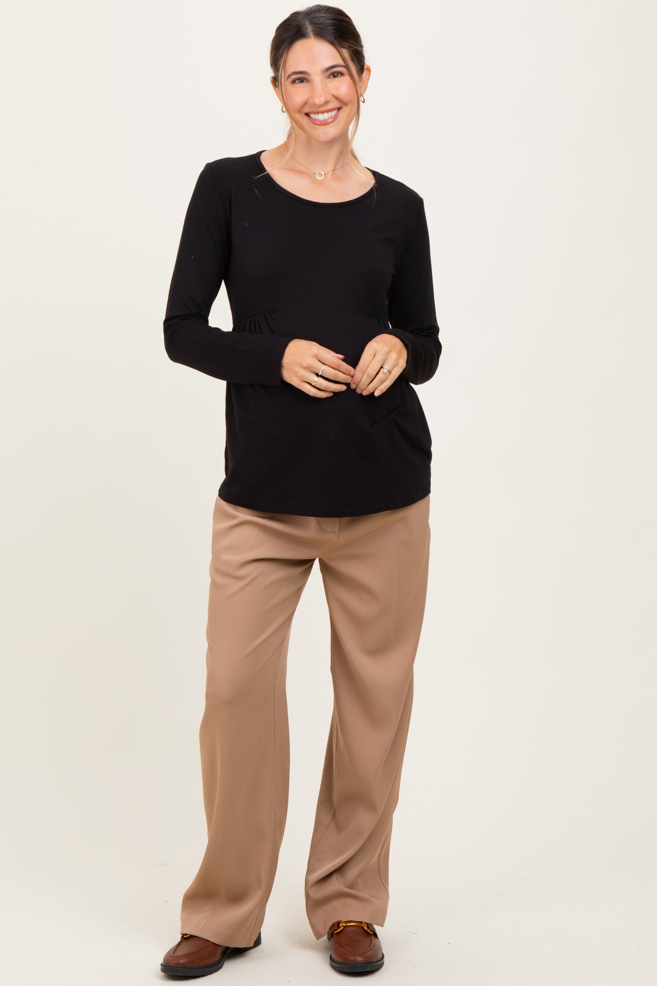 Elevate your maternity wardrobe with our Taupe Wide Leg Maternity Trousers. Designed for comfort and style, these trousers feature a flattering wide-leg silhouette that provides ease of movement and a chic, timeless look. Made from soft, breathable fabric, they gently accommodate your growing bump while maintaining a tailored fit at the waist with adjustable panels for personalized comfort. The versatile taupe color pairs effortlessly with any top or jacket, perfect for both casual outings and professional settings. Trendy yet practical, these trousers are a must-have for every expecting mom seeking comfort without compromising on style.