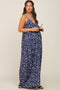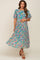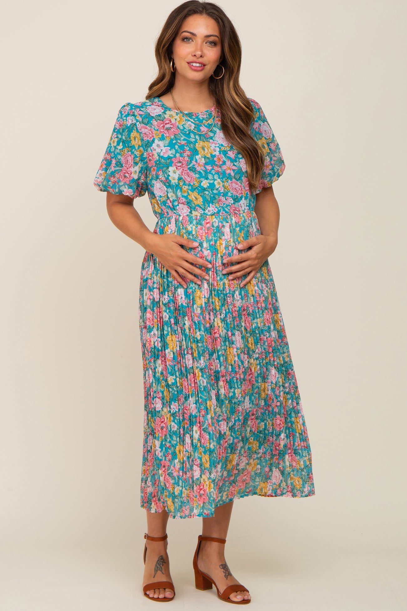 Teal Floral Chiffon Pleated Maternity Midi Dress