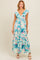 Teal Floral Ruffle Accent V-Neck Maxi Dress