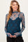 Teal Mesh Lace High Neck Long Sleeve Maternity Top