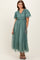 Teal Ruffle Accent Mesh Overlay Maxi Dress
