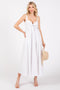A stripped maternity dress that includes a front self tie, round neckline, and side slit.